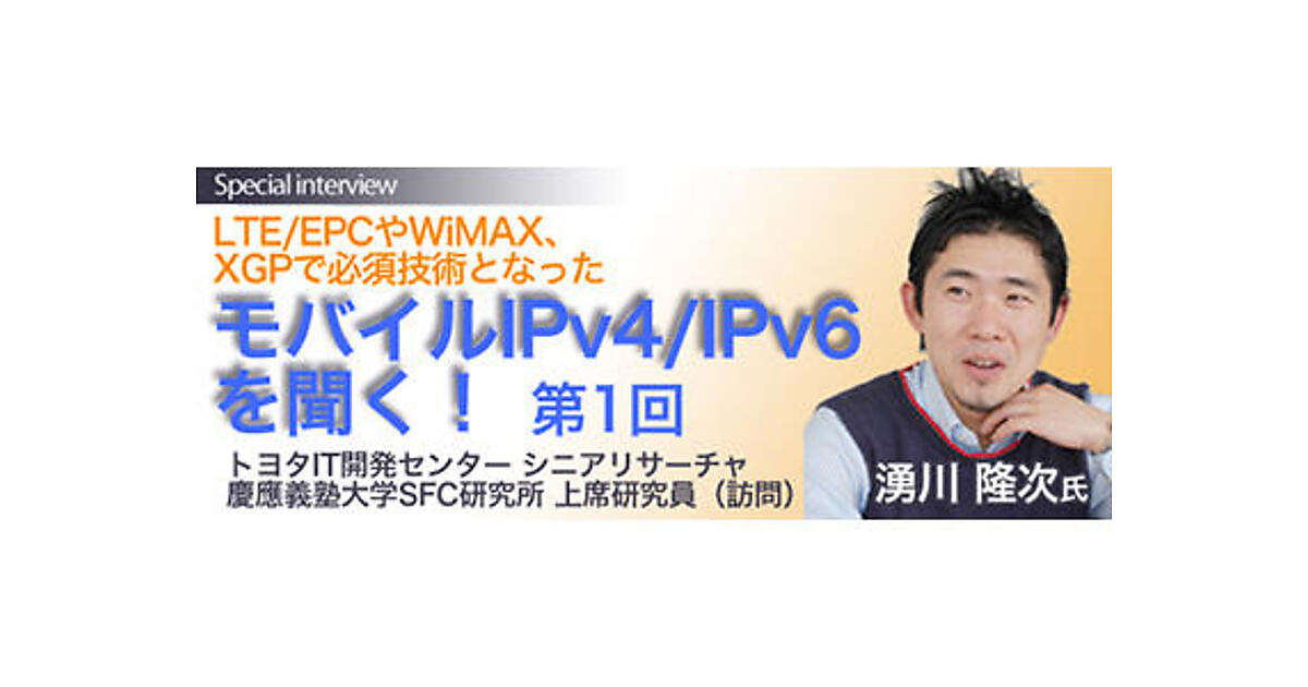 ここでは、この分野で10年余の長年にわたって地道な研究を重ねてきた、トヨタIT開発センター シニアリサーチャ、慶應義塾大学SFC研究所 上席研究員(訪問)である湧川 隆次(わきかわ りゅうじ)氏に、最新のモバイルIPについて、モバイルIPv4からモバイルIPv6、プロキシー・モバイルIPに至るまで、その全体像をお聞きしました。