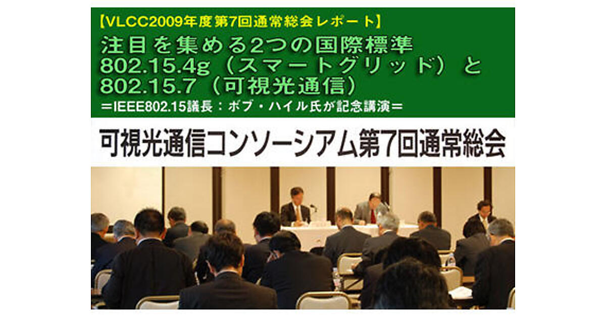 BluetoothやZigBeeなどの近距離無線通信ネットワークの標準化を推進するIEEE802.15(WPAN)の議長を務めるボブ・ハイル(Bob Heile)氏は、去る2009年11月11日に霞が関ビル・東海大学校友会館で開催された「可視光通信コンソーシアム(VLCC:Visible Light Communications Consortium)2009年度第7回通常総会」に招かれ、「IEEE802委員会の標準活動の概要と802.15WG」に関する記念講演を行った。ここでは同講演のうち、802.15WGの802.15.4g(SUN:スマートグリッド)の新しい動きや、2009年1月に設立された802.15.7(VLC:可視光通信)のホットな標準化動向を中心に紹介する。なお、本記事は、当WBB Forum編集部が若干の補足説明を加えながらその内容を要約していることをお断りしておく。また、当日の会場に展示された可視光通信に関する展示内容も簡単に紹介する。