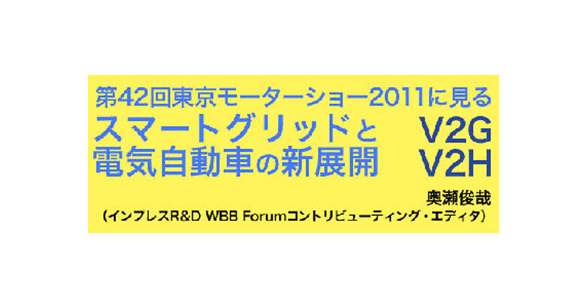今回は、V2HとV2Gをキーワードに、電気自動車とスマートグリッドに関する製品動向や業界動向について東京モーターショー2011での展示内容を踏まえてレポートした。今後、日本国内におけるスマートグリッド・ビジネス市場は、スマートハウスと電気自動車、そして太陽光発電や風力発電などのマイクログリッド(分散型電源)が連携しながら展開され、各社から新しい製品とサービスが市場に、続々と投入されていくことになろう。