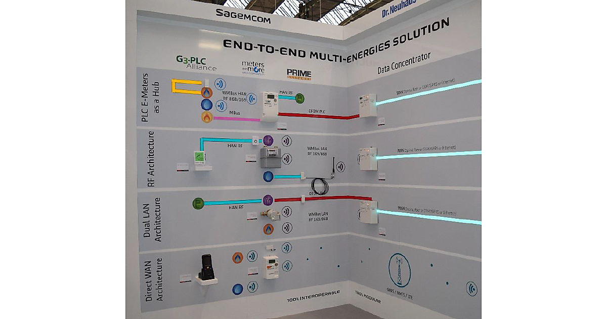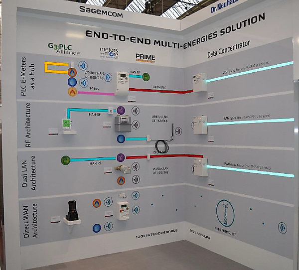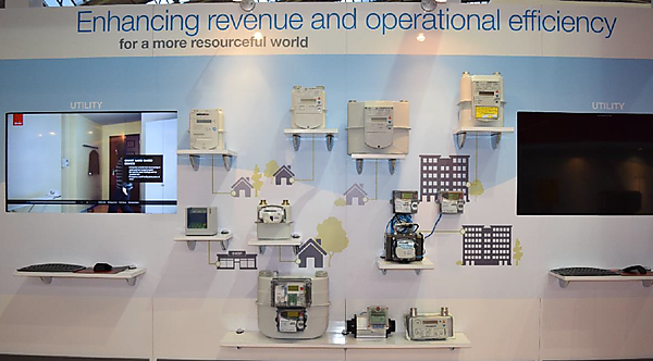 エネルギー管理システムを開発しているItron(アイトロン)や、通信機器、スマートメーターの開発を行っているSagemcom(サジェムコム)などの各社では、電気メーターに加え、ガスメーター、水道メーターに関しても展示が行われていた。