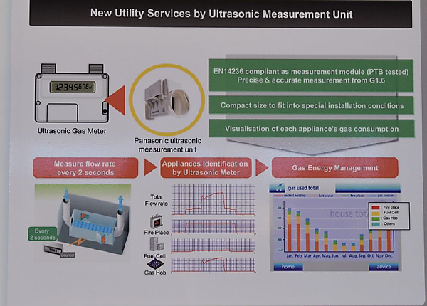 Panasonicは、同社が開発している超音波式スマートガスメーターを実現するための技術である「Ultrasonic Measurement Technology」(超音波計測技術)を展示。