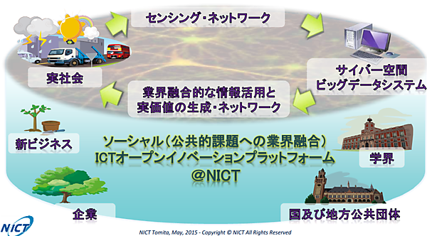 イベントの冒頭では、国立研究開発法人 情報通信研究機構(NICT)理事の富田二三彦氏が主催者挨拶を行い、ICTが浸透してきた現在では、実社会とサイバー社会をどのようにつないでいくかが重要になると述べた。