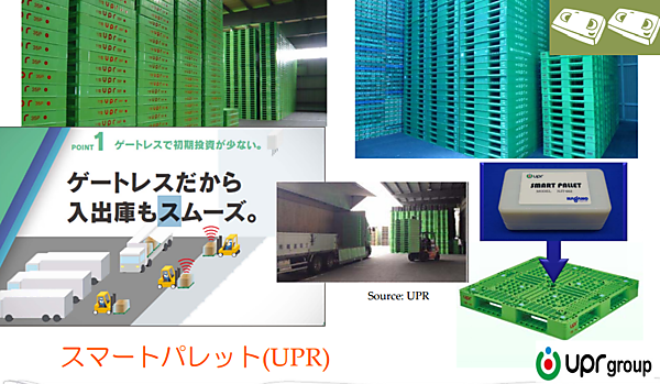また、荷物を運輸する際に利用するパレットのレンタルを行っているユーピーアール(本社:東京都千代田区)は、パレットに位置情報センサーを備えることで、どの荷物が、いつ、どの場所に格納されたかを管理できる例についても述べた(図4)。