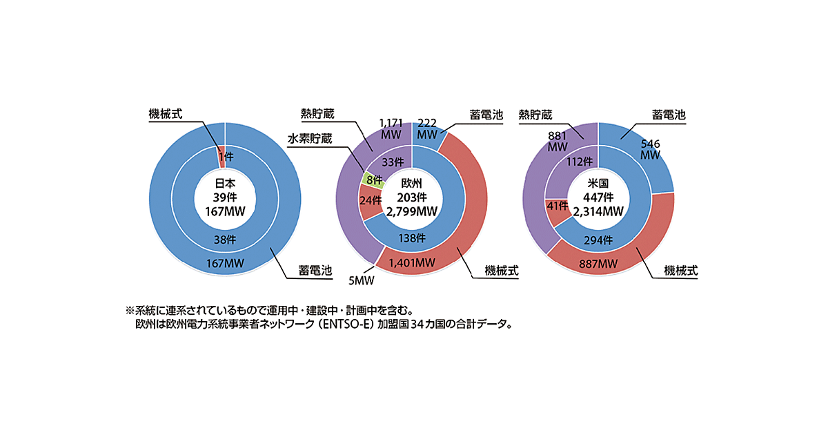 なお、今回はテーマの対象外であるが、デマンドレスポンスの分野でも蓄電池技術は威力を発揮するポテンシャルをもっている。例えば、電気自動車に搭載される蓄電池は、輸送手段としては稼働率が低くなりがちだが、自宅やオフィスで駐車中に充電し、必要なときに系統を支援するという「二次利用」的な役目を果たすことができる。このような二次利用は、蓄電池のもつ宿命的な欠点である高コスト性をカバーできる可能性がある。