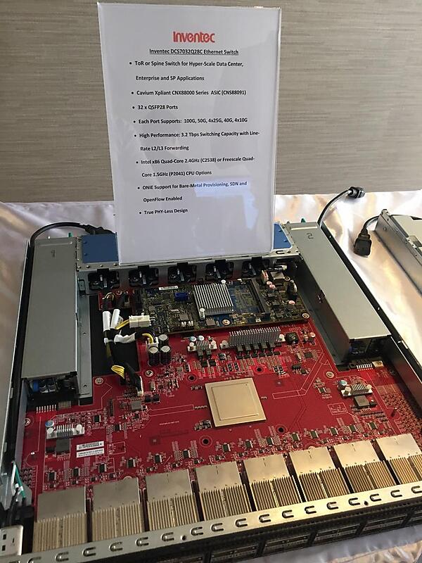 ▲インベンテックは、XPliantプロセッサを搭載したイーサネットスイッチDCS7032Q28Cを展示。