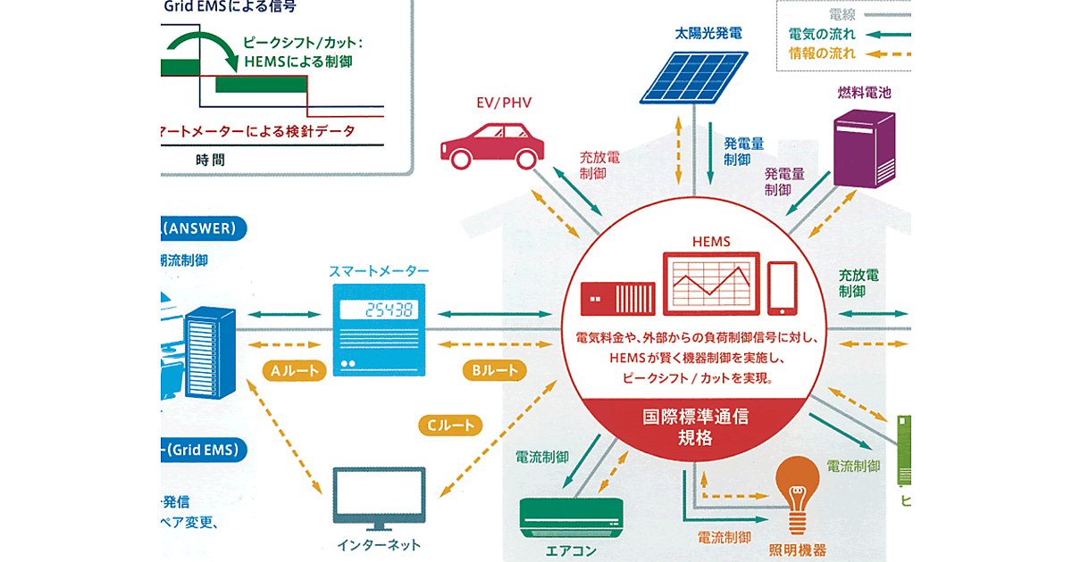 この環境下で、日本の標準通信規格である「ECHONET Lite」や米国のNIST注3が採用を決定している「SEP 2」(Smart Energy Profile 2)を実装したHEMSを用いて、デマンドレスポンス技術の実証・評価などが行われる。