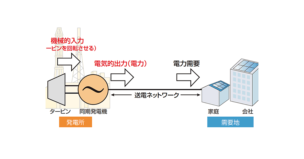 図1に示すように、「電力の需要と供給(需給)を一致させる」ということは、一般に、「電気的出力と電力需要を一致させること」として理解されやすい。しかし、電力システムにおいて数十分程度以内の電力需給の変動を考える場合、「発電機を回転させる機械的入力(すなわちタービン)と電力需要をどう一致させるか注5」が重要となる。