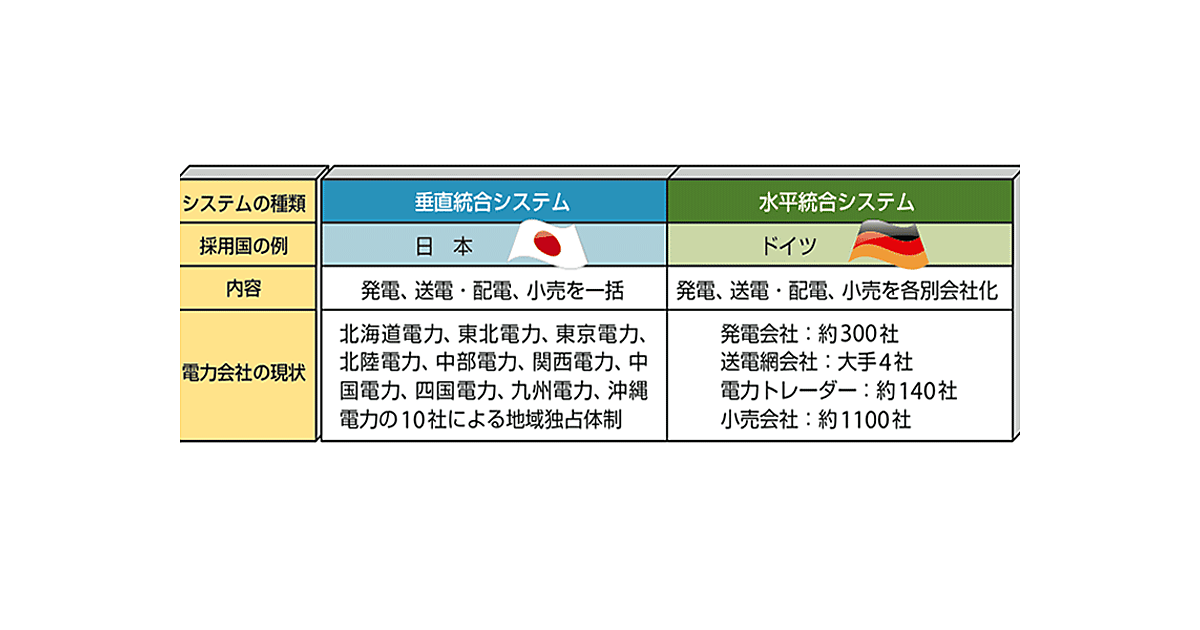 先に、電力における垂直統合システムと水平統合システムについて述べたが、筆者のドイツでの経験も踏まえ、この問題について考えてみよう。