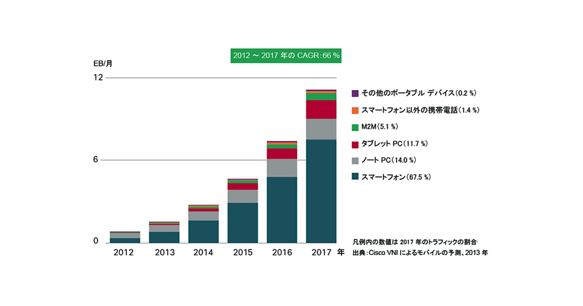 「Cisco Visual Networking Index (VNI) Global Mobile Data Traffic Forecast for 2012 to 2017」http://www.cisco.com/web/JP/solution/isp/ipngn/literature/pdf/white_paper_c11-520862.pdf