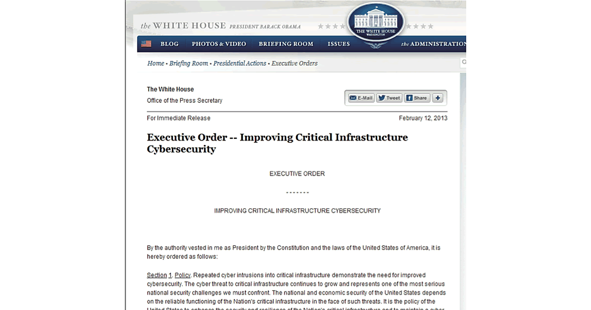 〔出所 ホワイトハウスの即日発表リリース(Immediate Release)、2013年2月12日、http://www.whitehouse.gov/the-press-office/2013/02/12/executive-order-improving-critical-infrastructure-cybersecurity 〕