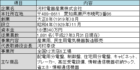 表1 河村電器産業のプロフィール
