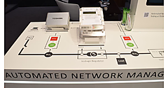 DistribuTECH 2016では、展示会場をマイクログリッドと見立てて、マイクログリッドの最適化のデモを行った。デモの参加企業はDuke Energyのほか、COWの参加企業がさまざまな役割を負っていた(写真6)注7。例えば、伊藤忠商事の仲介によって参加している東芝は、同社のμEMS(マイクロEMS)を使ったマイクログリッド内の需給バランスの調整などを行っていた(写真7)。