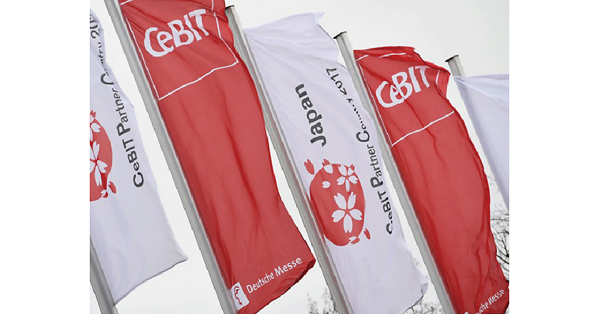 写真1 日本がCeBIT 2017のパートナー国であることを示す会場の旗