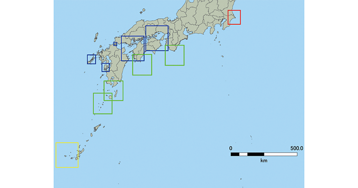 青枠:潮流ポテンシャルマップ(瀬戸内海東部、瀬戸内海西部、関門海峡、有明海・八代海、五島列島)