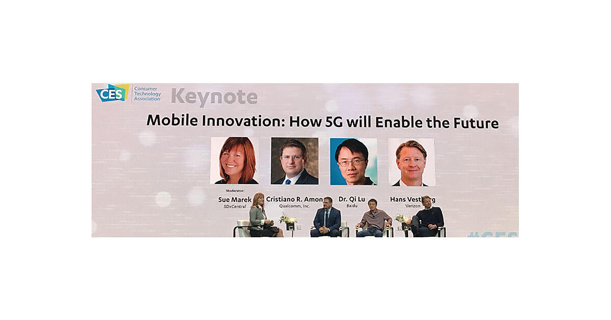 CES 2018におけるキーノートのセッションの1つでは、“Mobile Innovation: How 5G will Enable the Future”(モバイルイノベーション:5Gはどのように未来を可能にするか)を掲げていた(写真1)。