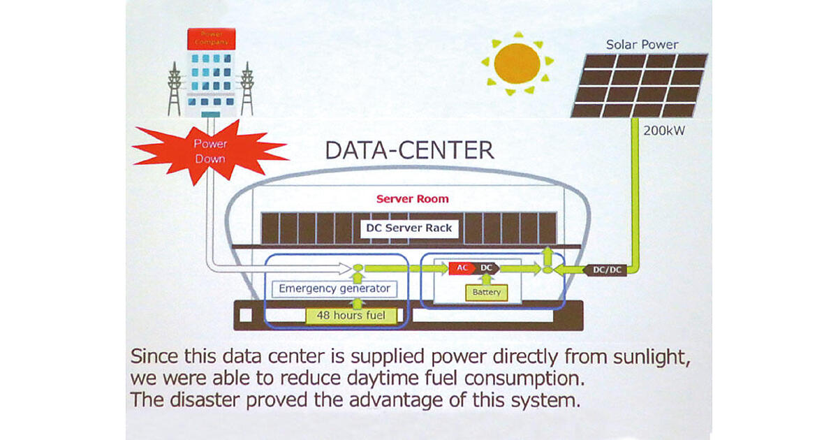 さらに、再生可能エネルギー(太陽光発電)の普及を背景に、データセンターの電力として、いち早く太陽光発電(出力:200kW)を採用したことも画期的なことであった。