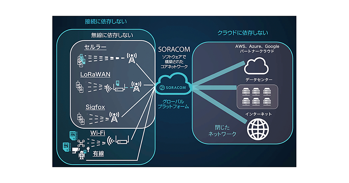 図1 あらゆるアクセス回線を通じて各種クラウドとセキュアに接続可能な「SORACOM」