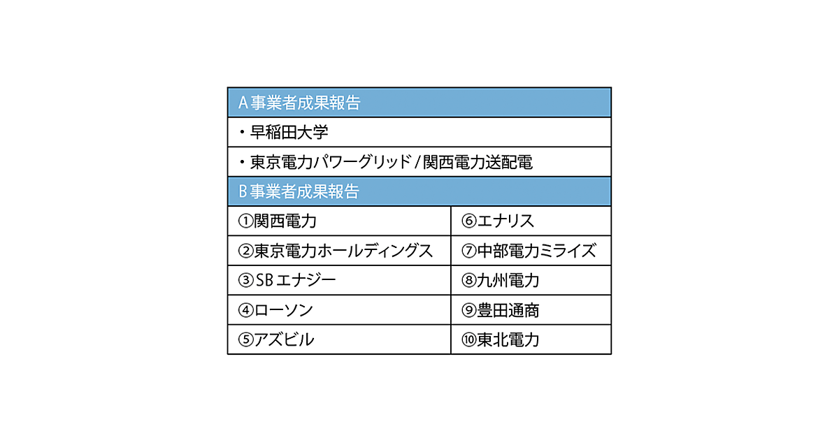 2020年度の実証事業には、表に示す10コンソーシアム(計94事業者)が参加し、VPPで制御可能なリソース量は計62MWに達し、当初目標の50MWを超えるなど一定の成果を上げた。