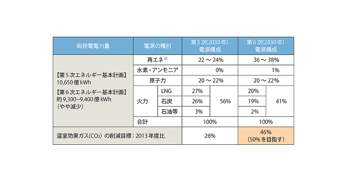 2021年7月21日、経済産業省が主催する総合資源エネルギー調査会 基本政策分科会(第46回会合)は、注目されている「第6次エネルギー基本計画」の素案を発表した注1(表)。