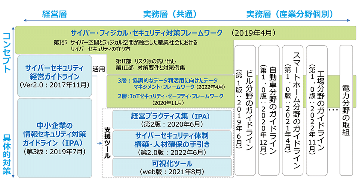 上村 はい。ガイドラインを作成して、現在のサイバーセキュリティの脅威にはどのようなものがあるのか、考えるべきポイントを示しました(図2参照)。事業者や産業分野、製品やサービスによって守り方や対応の仕方もそれぞれありますが、まずガイドラインという形で提示し、それに則った対策をそれぞれ進めていただきたいということです。