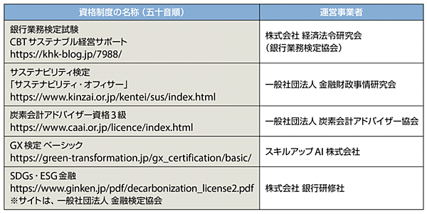 今回認定された5つの資格制度はいずれも、(1)に示す「脱炭素アドバイザー ベーシック」で、基礎的な知見の習得を目的としたものだ。