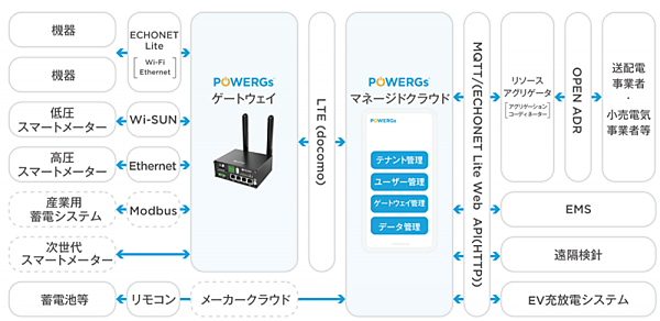 図2に、POWERGsのシステム構成を示す。詳細は割愛するが、図2の左側はPOWERGs GWの通信環境を、右側はPOWERGsマネージドクラウドのサービス環境を示している。