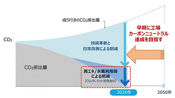 トヨタ自動車は、自社工場のCO2排出ゼロの目標達成を2050年(カーボンニュートラル)としていたが、それを2035年までとし、大きく15年も前倒しした(図5)注7。