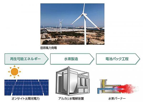 図6 トヨタ自動車の田原工場では風力と太陽光発電の電力でグリーン水素を製造