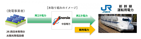 図2 JR西日本における「国内初の新幹線への再エネ由来電力導入」のイメージ
