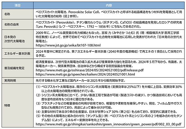 表1 ペロブスカイト太陽電池の主なプロフィール