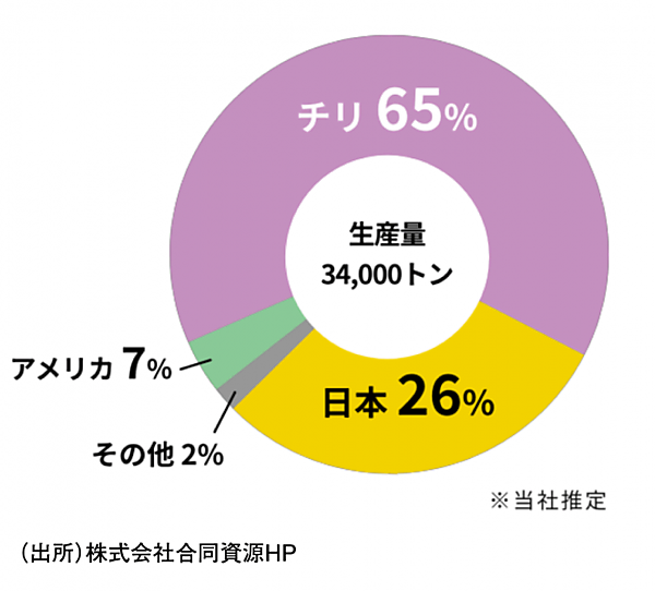 図6 ヨウ素生産量の国際シェア(日本:第2位)