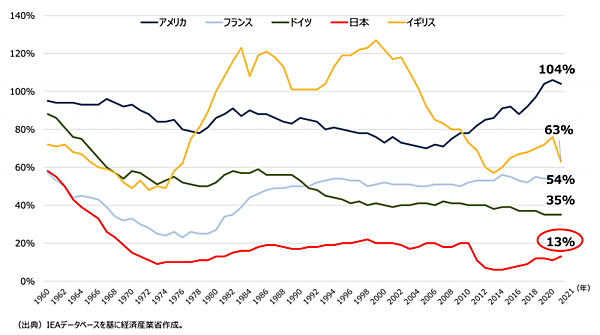 ─編集部 図7に見るように、日本のエネルギー自給率は先進国の中でも13%とかなり低く、エネルギー安全保障上の課題があるといわれています。また、現在普及しているシリコン型太陽電池では、日本は中国との市場競争で完全に負けています。そこで、日本発でしかも原材料(ヨウ素)も世界第2位と豊富なペロブスカイト太陽電池には、大きな期待が寄せられていますが、今後の動向についてはどのように考えていますか。