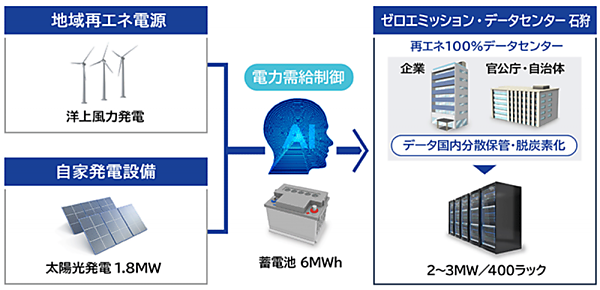 図3 ZED石狩の電源構成(洋上風力発電と太陽光発電)
