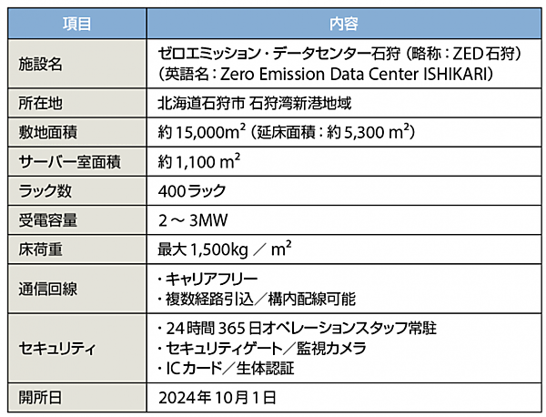 表1 ゼロエミッション・データセンター 石狩(ZED石狩)の概要