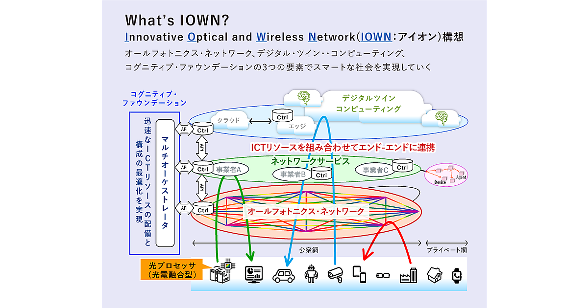 IOWN は、NTTが2019年5月に提唱し、2030年頃の実用化に向けて推進している次世代コミュニケーション基盤の構想だ。