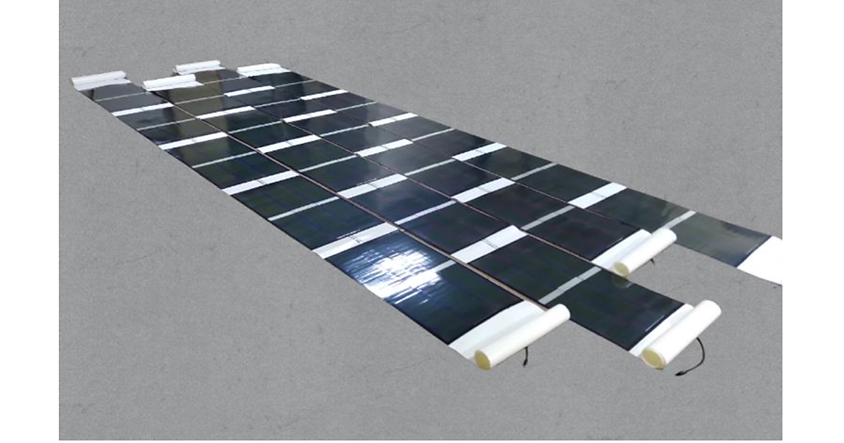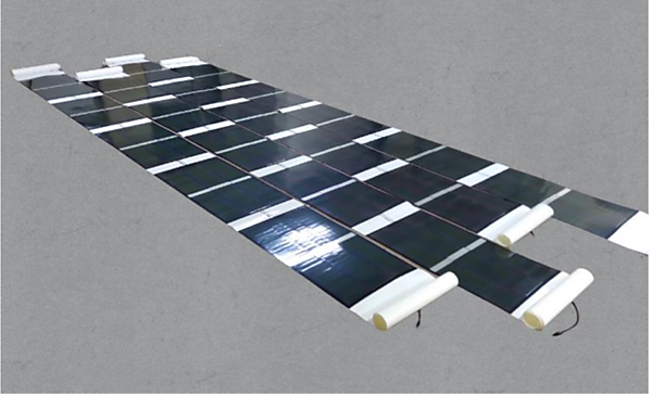 両社の実証では、電気的に接続した複数のフィルム型カルコパイライト太陽電池を基材シート上に並べた発電モジュールを使用し、キロワット規模の発電を行う。こうした手法で薄膜太陽電池の大面積化を図る実証は国内で初だという。