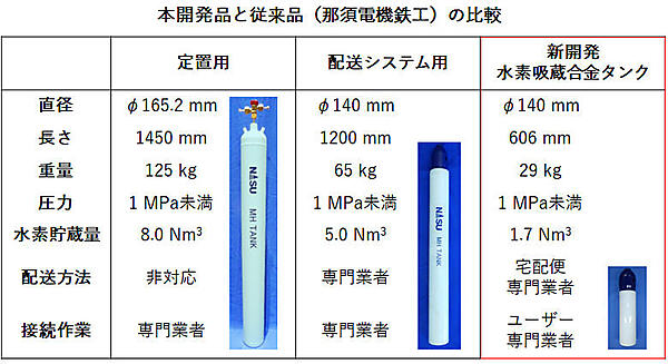 図2 竹中工務店と那須電機鉄工が開発した水素タンクと従来製品の比較