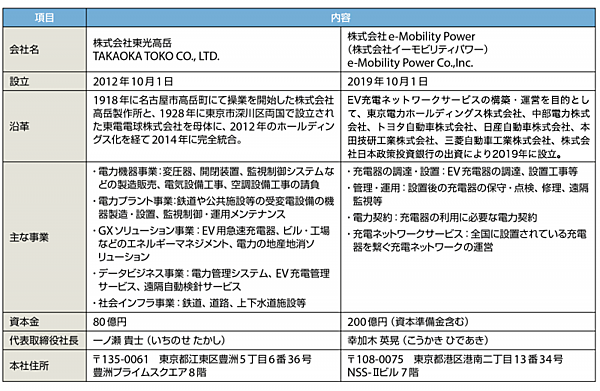 出所 東光高岳およびe-Mobility Powerの会社概要をもとに編集部で作成