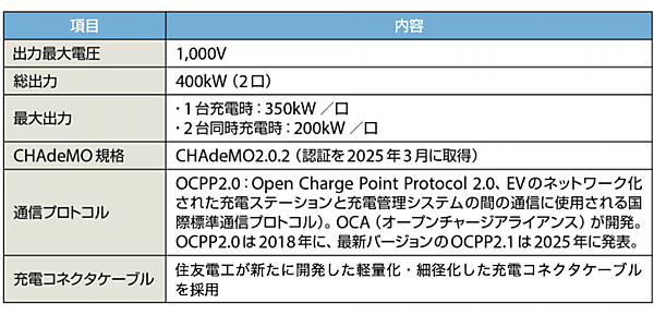 表2 次世代超急速充電器「SERA-400」の基本仕様
