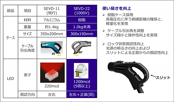 図5 新型コネクタ(SEVD-22)仕様と現行モデル(SEVD-11)との比較