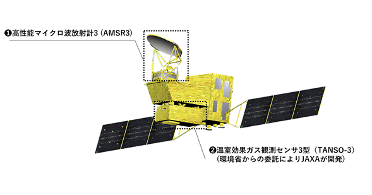 観測のため、(1)「温室効果ガス観測センサ3型(Total Anthropogenic and Natural emissions mapping SpectrOmeter-3: TANSO-3」、(2)「高性能マイクロ波放射計(Advanced Microwave Scanning Radiometer 3: AMSR3)」の2つを搭載している。