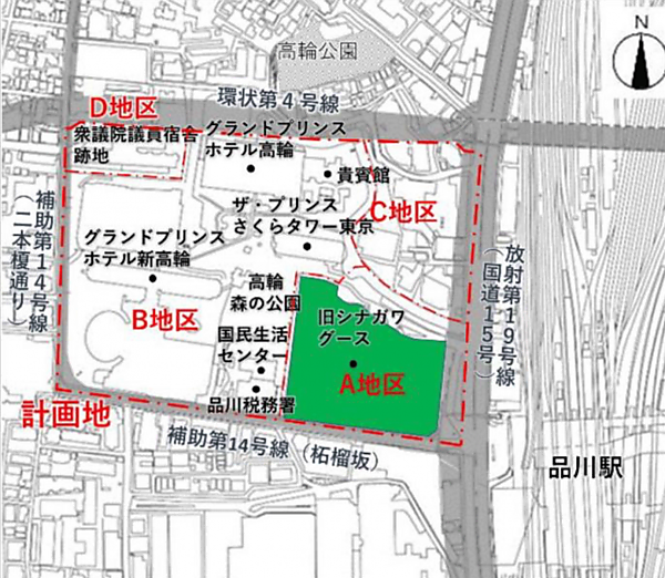 (2)A地区新築計画の敷地(緑色部分:東京・品川)