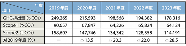 GHG排出に関して、従来の「2030年度に2019年度比30%削減」の方針を、「2035年度に同70%削減」へと大幅に引き上げた。これは日本政府の中期目標(2030年までに2013年度比46%削減)や、気候変動に関する国際基準であるIPCC注2の目標(2030年までに2010年比45%削減)をも上回る水準となる。