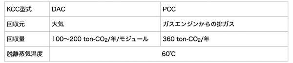 今回、建設に着手した実証設備では、KCCを活用し、CO2濃度の低い大気から直接CO2を回収するDAC(Direct Air Capture)と、排ガスからCO2を回収するPCC(Post-Combustion Capture)という2つの技術を実証する(図2)。