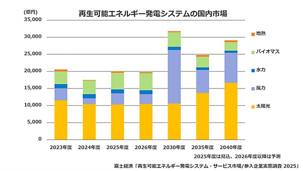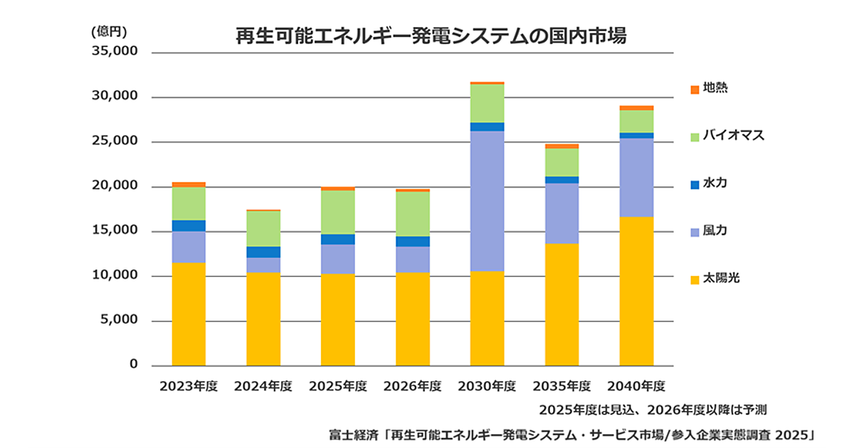 出所 株式会社富士経済 プレスリリース 2025年7月30日、「再生可能エネルギー関連の国内市場を調査」