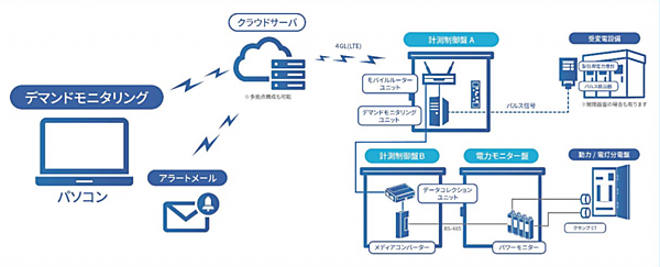 e-Reducer Iは、受電電力を常時監視する「電力デマンド監視機能」により、目標値を使用電力が超えると予測した場合、警報メールを通知する。これにより、電力基本料金を抑制するという。加えて、分電盤や各設備に取り付けたセンサーから消費電力量を測定し、時間別、日別、月別に使用電力量をグラフや数値で表示する機能を提供する。
