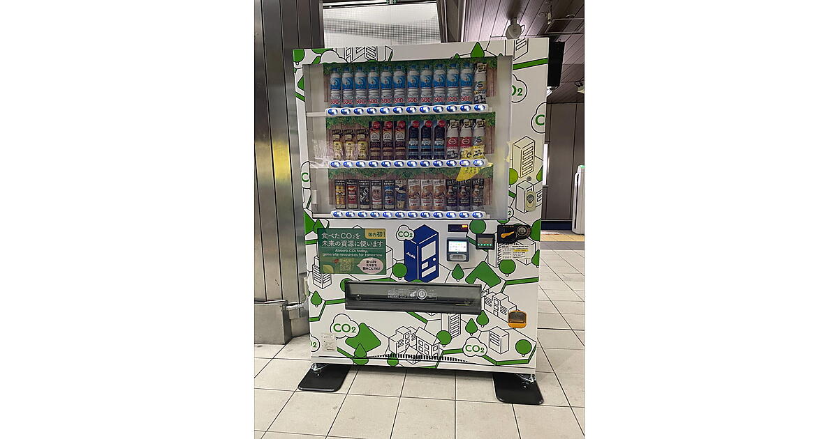 アサヒ飲料株式会社 近畿圏本部(以下、アサヒ飲料)と北大阪急行電鉄株式会社(以下、北大阪急行電鉄)は、大気中のCO2(二酸化炭素)を吸収する「CO2を食べる自販機」を2025年8月7日に北大阪急行電鉄の千里中央駅構内に2台設置した。自動販売機で吸収したCO2をアスファルトやコンクリートなどの工業原料に活用する。国内初の取り組みだという。アサヒ飲料が同日に発表した。
