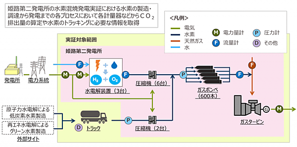 最終的に水素を姫路第二発電所のガスタービンで混焼発電に利用する。その際にプラットフォーム上の追跡データを活用し、発電された電力が「どの由来の水素を、どれだけの比率で使用したものか」を明確に識別できるかを検証する。これにより、電力の利用者に対し、その電気が持つ環境価値を客観的なデータに基づいて示すことが可能になるという。