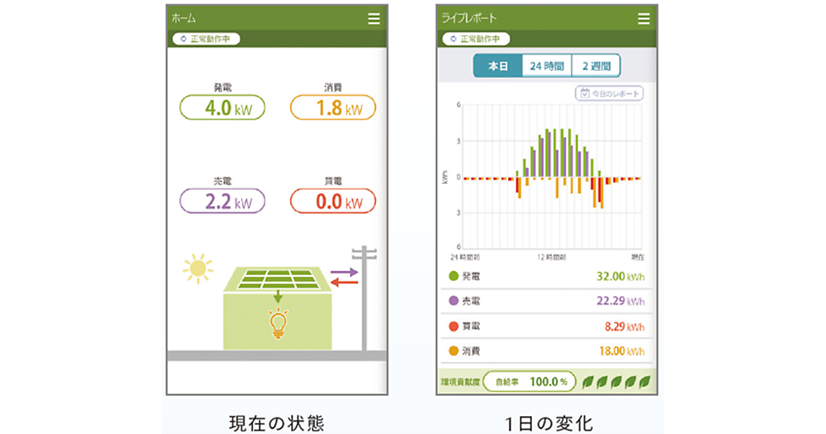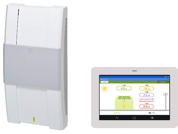 両モデル共通の新機能として、スマートフォンアプリを使用し、太陽光の発電量や売電量、家全体の消費電力、買電状況などを確認するための機能を提供する。オプションで販売する表示ユニットを組み合わせることで、Webブラウザを使用せずに管理することもできる(図3)。表示ユニットは同社製マルチ蓄電プラットフォームのオプション品を改良し、開発した。