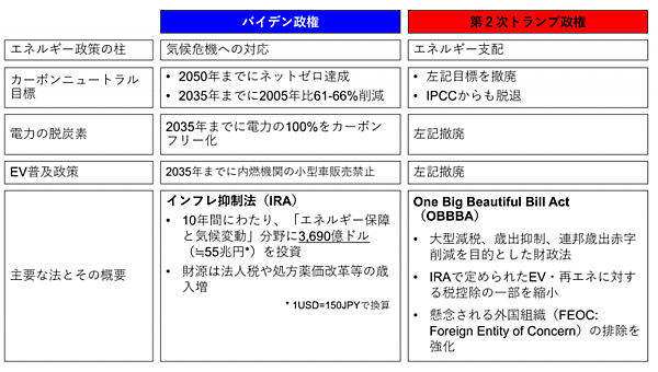 図1 バイデン政権と第2次トランプ政権のエネルギー政策の比較